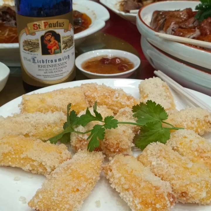 墙裂推荐音乐家·圣母之乳小甜水搭配这道芝士海鲜卷,其酸度可以中和芝士的甜腻感。这个搭配,我能吃两份,谢谢!!!