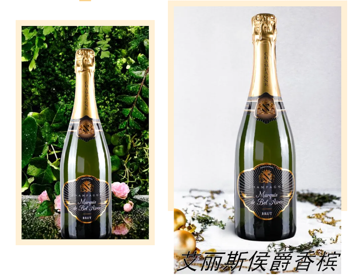 香槟(CHAMPAGNE)是奢华的快乐,是浪漫的诱惑,是胜利的庆祝。这款艾丽斯侯爵香槟在"Concours de vins et Terroirs Authentiques"大赛中排名14位。(此项赛事在比利时,共400款香槟参赛)。由60%皮诺莫尼耶、40%黑皮诺酿造而成,明亮的浅金黄色泽,有柑橘、白花、杏干、蜂蜜、饼干及淡淡的烤麦子气息,气泡细腻而持久,酸度秀挺清冽,质感饱满丰润,余韵回甘且悠长,是一款极其精致的干型香槟酒。