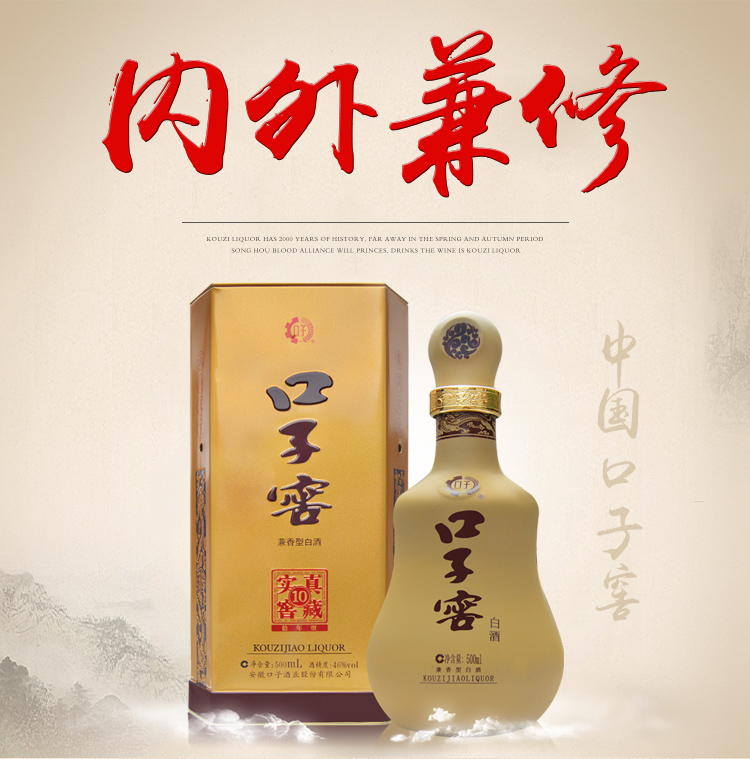 安徽口子酒业主导产品。口感“香气馥郁,窖香优雅,富含陈香、醇甜及窖底香”,为中国兼香型白酒的典型代表。其独特的风格和卓越的品质得到了社会各界的高度赞同,被评定为中国十八大名优酒标准样品,荣获"中国白酒典型风格金杯奖“并被国家批准实施原产地域产品保护;评定为全国首届三绿工程畅销白酒品牌、中国白酒工业十大影响力品牌并通过了纯粮固态发酵白酒标志认定。