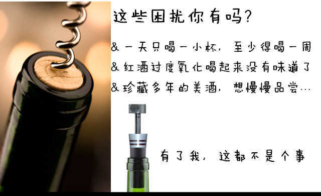 5.您是否为了一壶美酒来不及喝完就酸掉而烦恼呢?如果有了抽真空酒塞,您只要做一些简单的抽气动作,就可以将空气抽离酒瓶,减低瓶内发酵作用,并可将甘甜美酒保存多天。